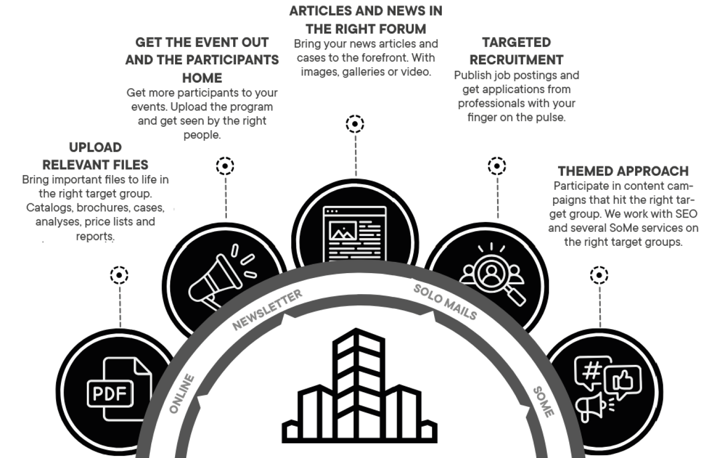 | Publish unlimited content (Articles, news, events, basic jobs, etc.) | Inkluderet | Inkluderet | Inkluderet |